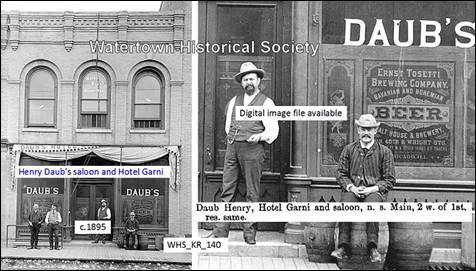 Daub’s Saloon and Hotel Garni. Henry Daub can be seen in the doorway.