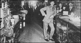 A burglar-proof safe in the vault was not meddled with.  Papers were scattered, envelopes broken open and things in the vault left in a rather chaotic state.