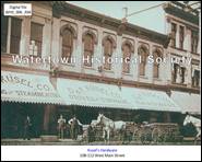 Daniel Kusel was a tinsmith, born in Mecklenberg, Germany, in 1838. Shortly after his arrival he opened a stove and tinware business in 1849. In 1864 his sons, Daniel and Frank purchased the business and expanded it into the Kusel Hardware.