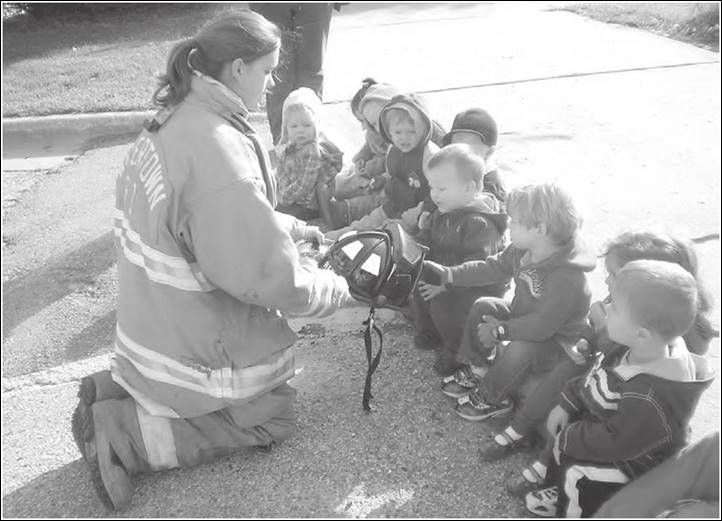 The Watertown Fire Department paid a visit to the Friday morning story time at the Watertown Public Library. Firefighter paramedics Tanya Reynen and John Duvernell along with Lt. Tim Gordon showed the children their firefighting equipment and fire truck. Logan Chavez is pictured getting an up-close look at the fire truck, courtesy of firefighter paramedic Reynen.