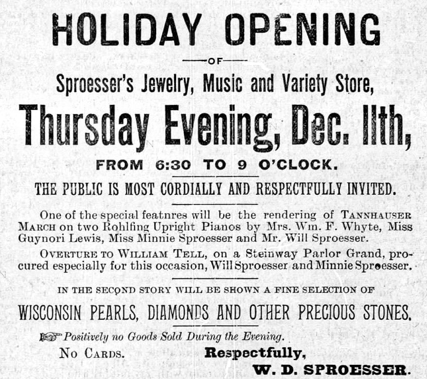 12 10 HOLIDAY OPENING OF SPROESSER’S, Dec. 11th